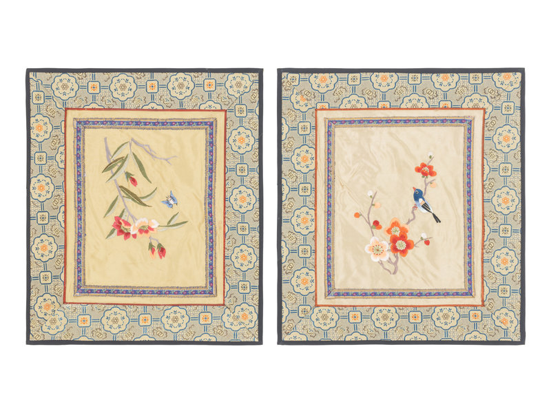 晚清-民國 織綉補子、挽袖、掛賬等一組十三件
