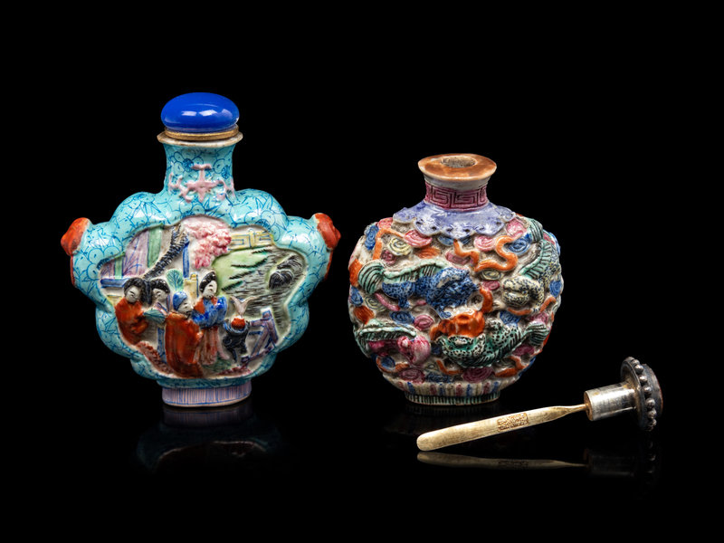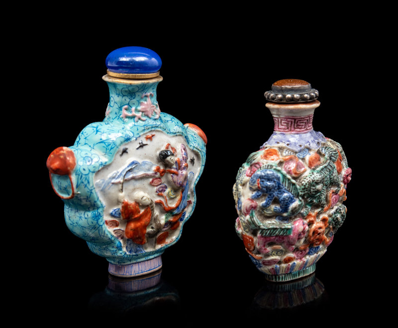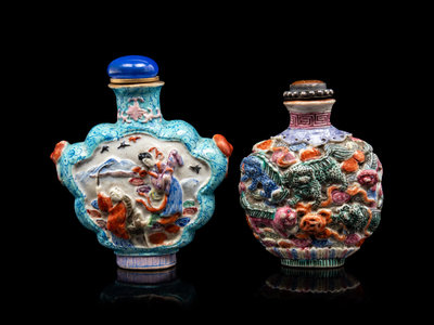 清晚期 粉彩模印鼻烟壺兩件