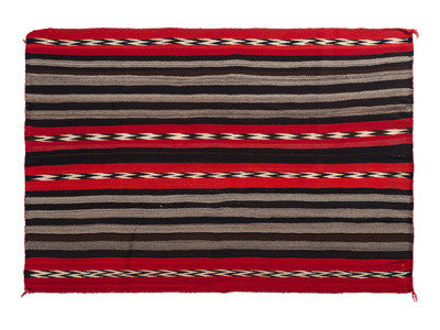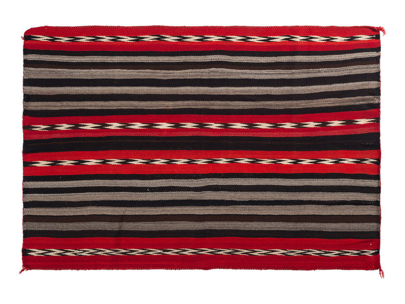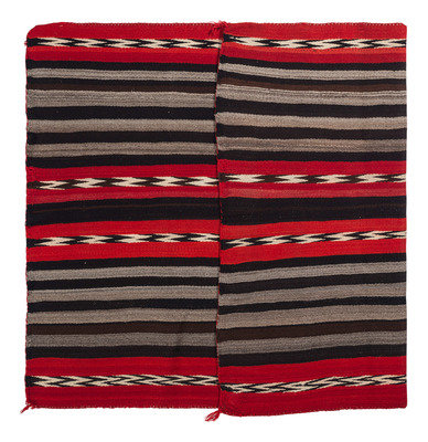 woven using soft, hand-spun wool in colors of red, dark brown, and gray