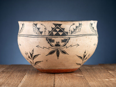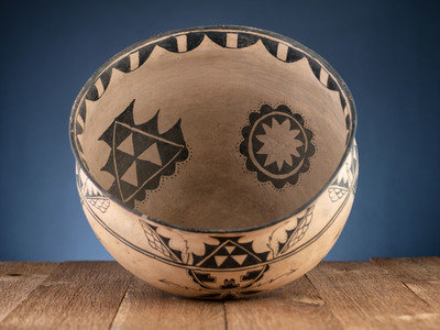 exterior painted with rain clouds and lightning; interior with other elemental imagery