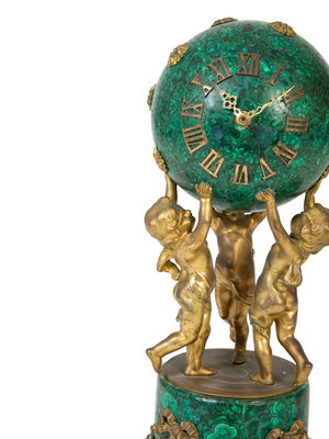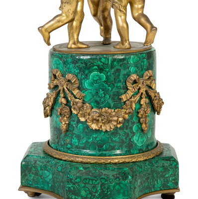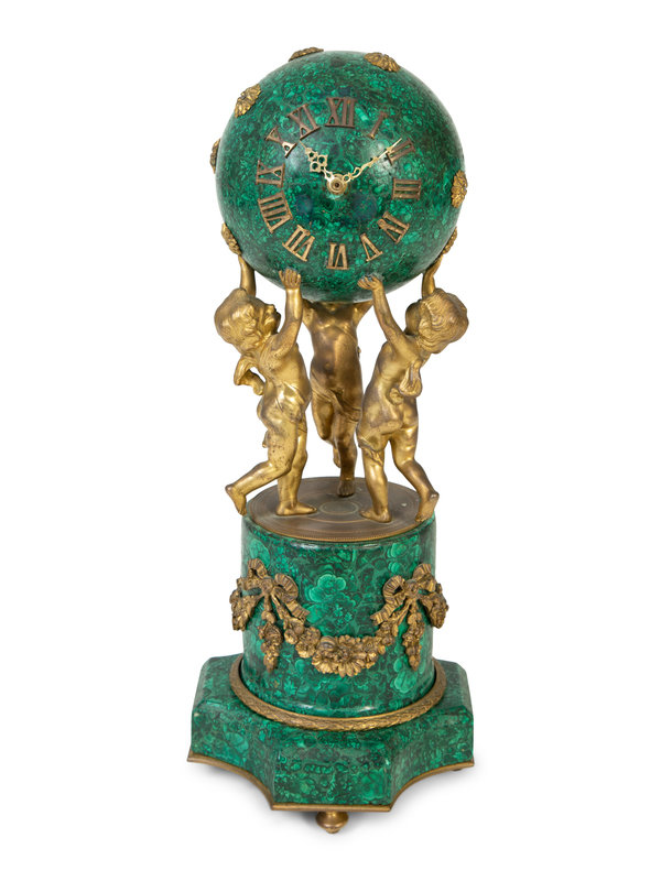 A French Empire Style Gilt Bronze Mounted Malachite Clock