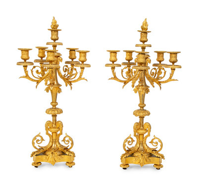 A Pair of Napoleon III Gilt Bronze Five Light Candelabra
