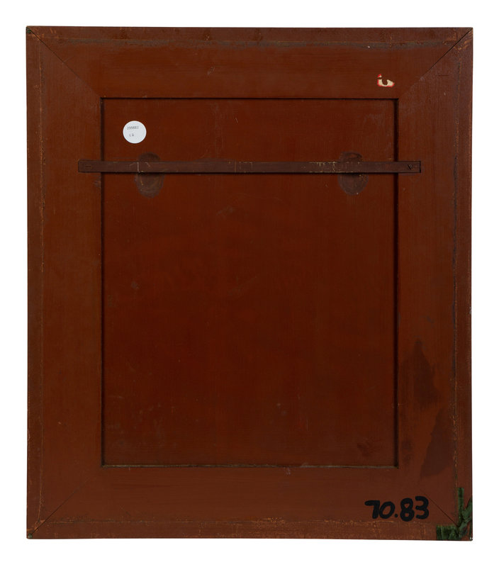 Framed 22 3/4 x 19 1/2 inches. Each limoges plaque is 7 3/4 x 3 1/2 inches.