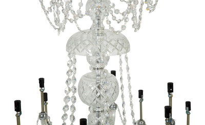 A Schonbek Cut Glass Eighteen-Light Chandelier