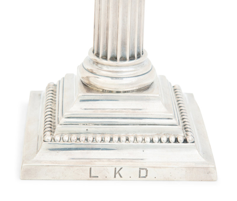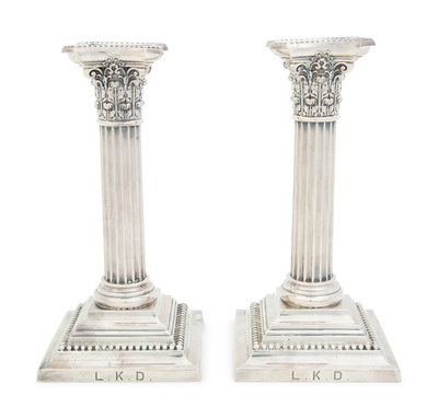 A Pair American Weighted Silver Corinthian Column Candlesticks