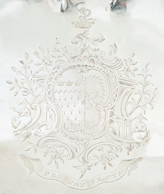 with swing handle, center armorial to basket.