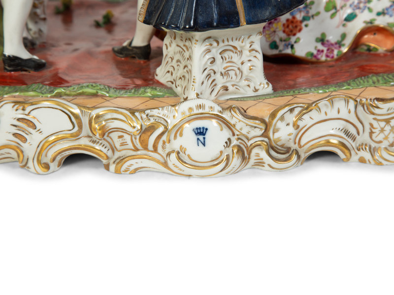 An Italian Capodimonte Polychrome and Gilt Painted Porcelain Figural Group