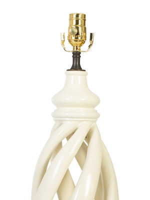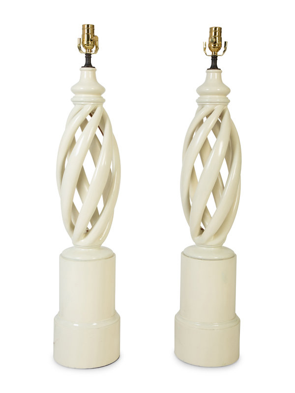 A Pair of Mid-Century Modern White Swirl Lamps Attributed to James Mont