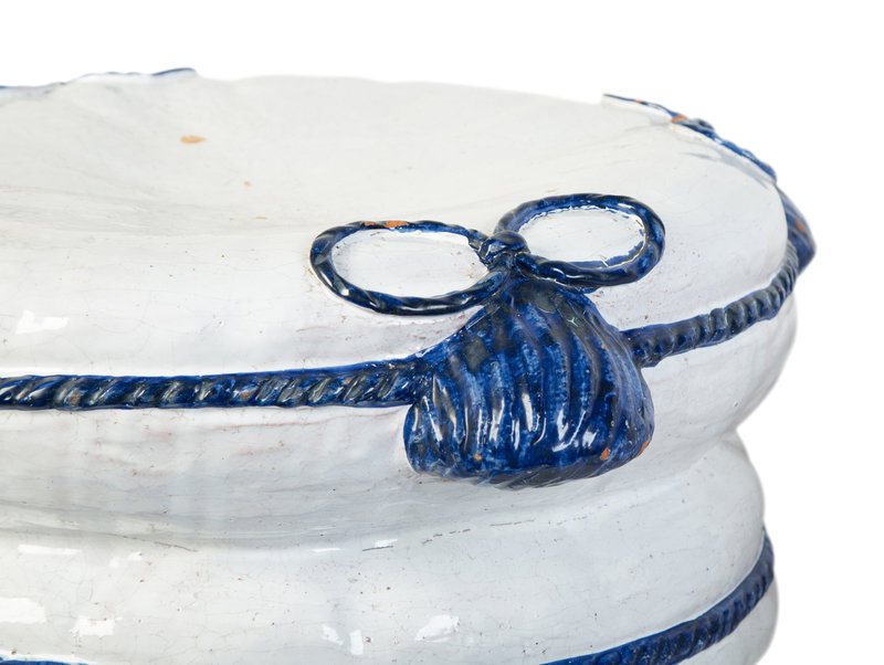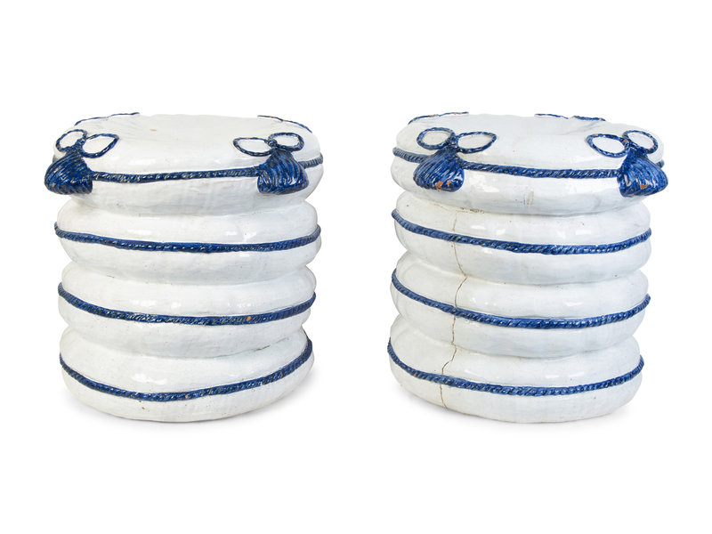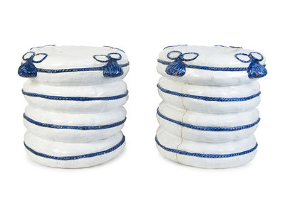 A Pair of Italian Glazed Terracotta Pillow-Form Stools
