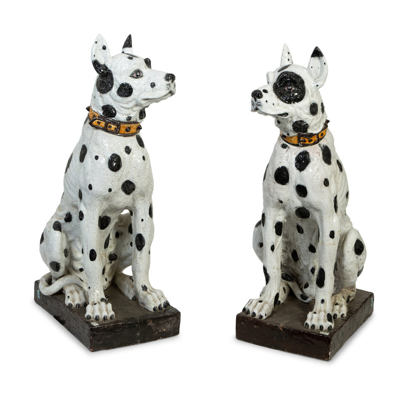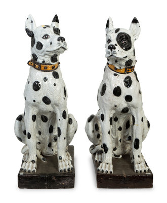 A Pair of Large Italian Glazed Terracotta Seated Dogs