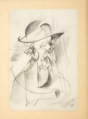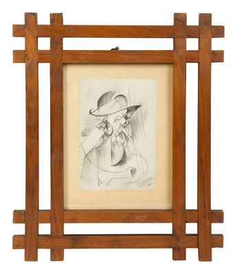 Sheet 7 1/4 x 5 inches; framed 15 1/2 x 13 inches.