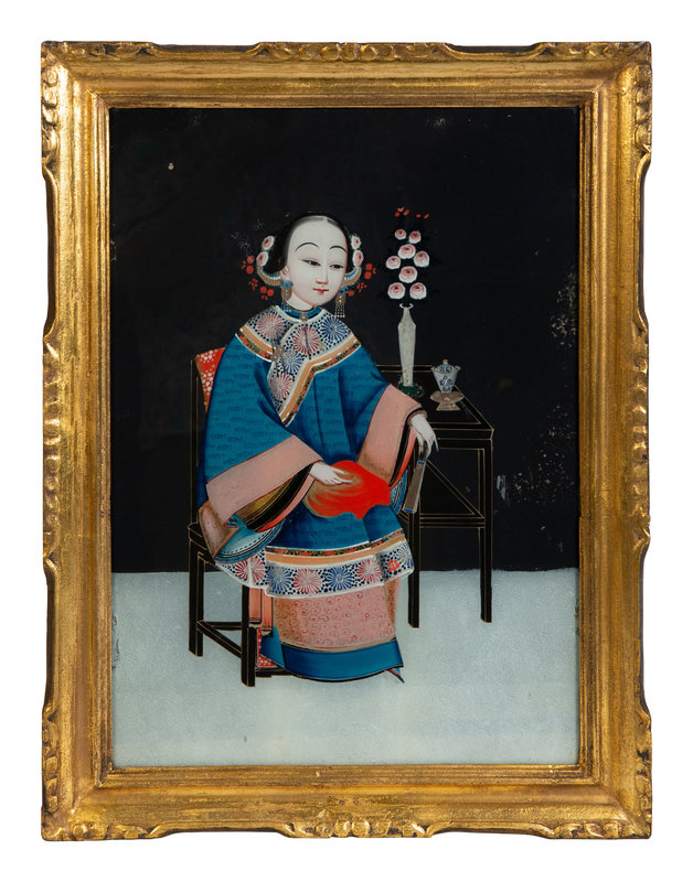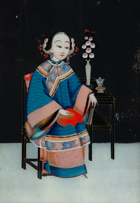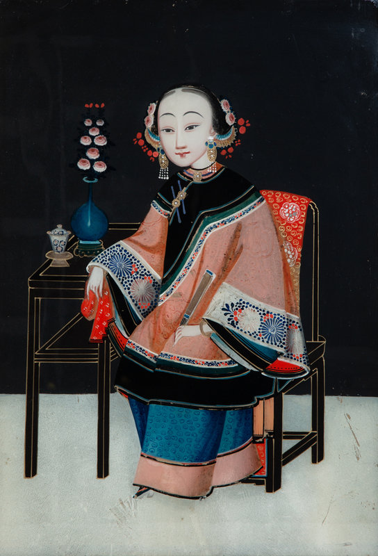 A Pair of Chinese Reverse Paintings on Glass of Young Woman