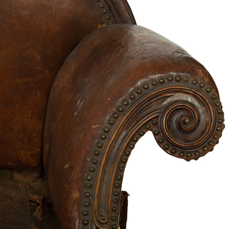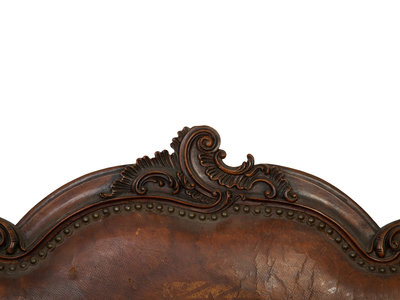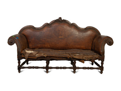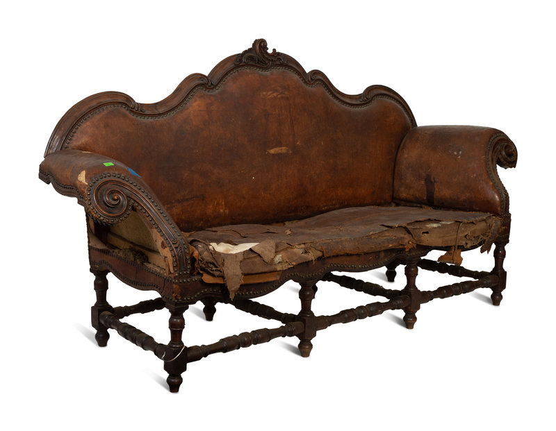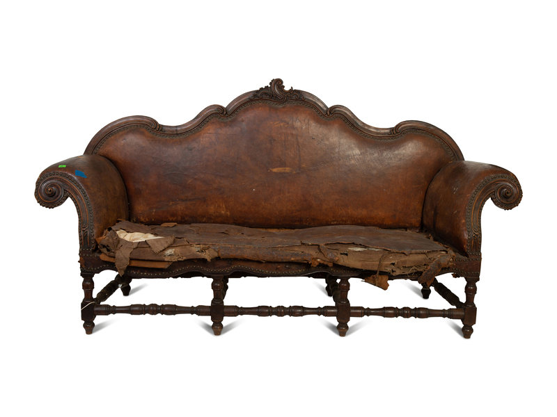 A Spanish Baroque Carved Walnut Leather-Upholstered Sofa