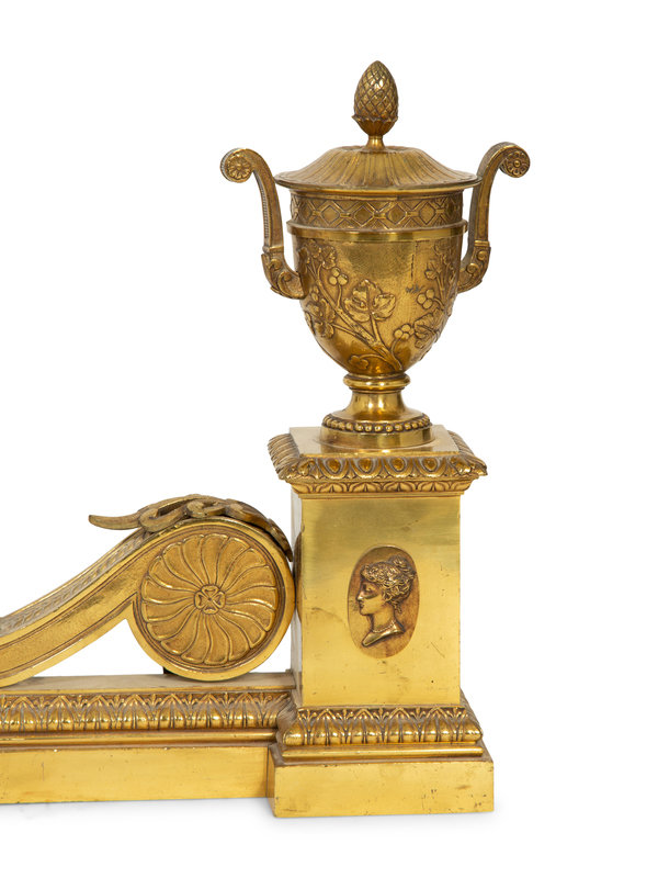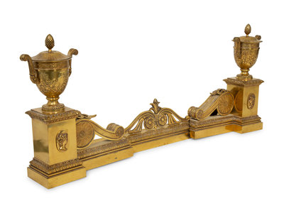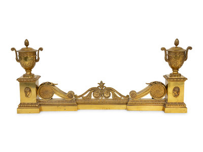 A Neoclassical Style Bronze Fire Fender with Urn-form Chenets