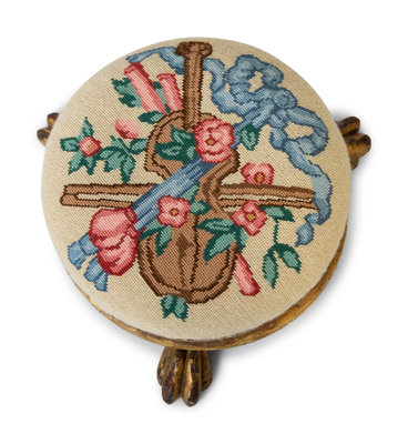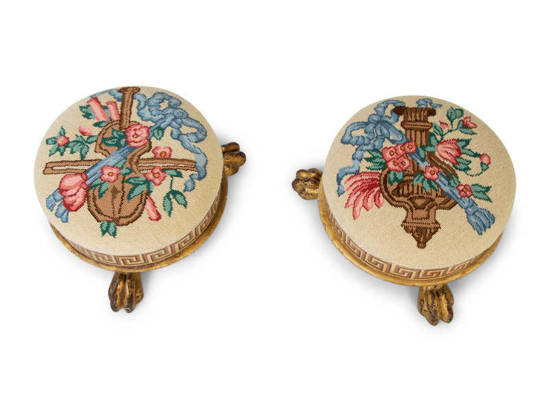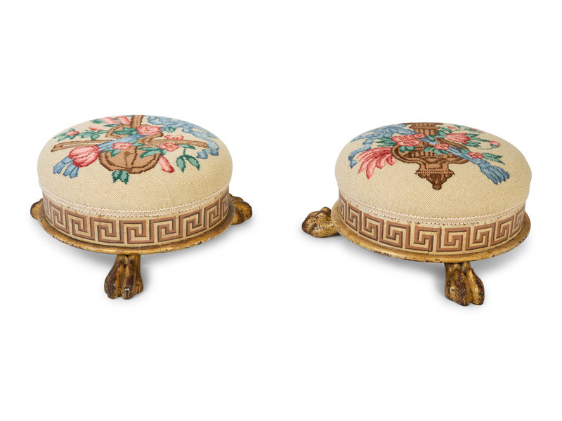 A Pair of Neoclassical Style Painted and Parcel Gilt Foot Stools