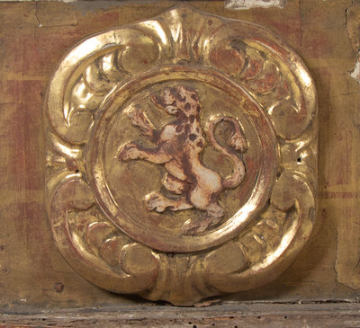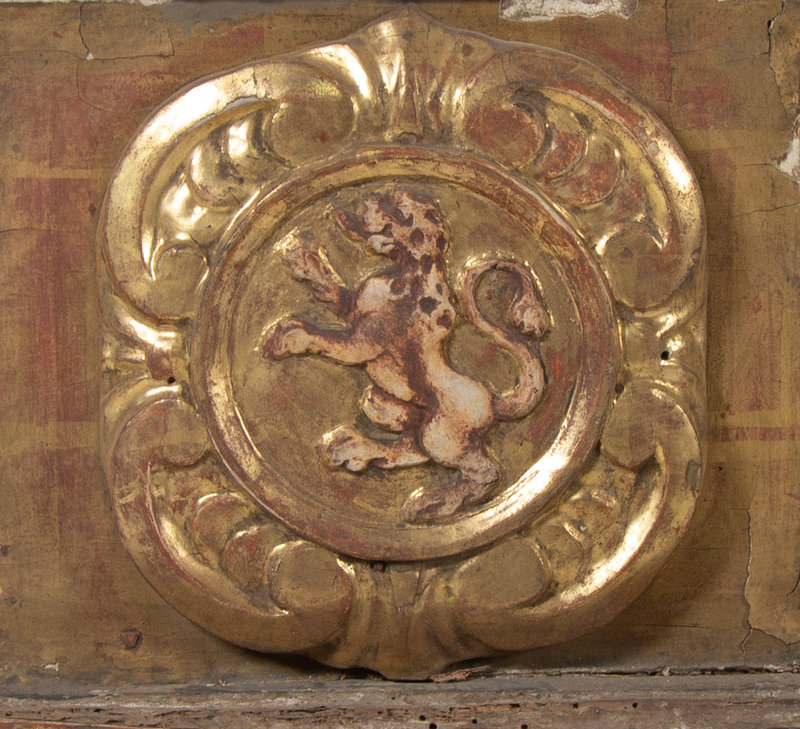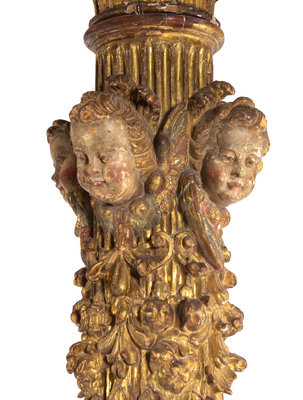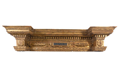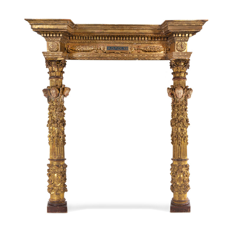 A French Baroque Carved Giltwood Pediment and Two Columns