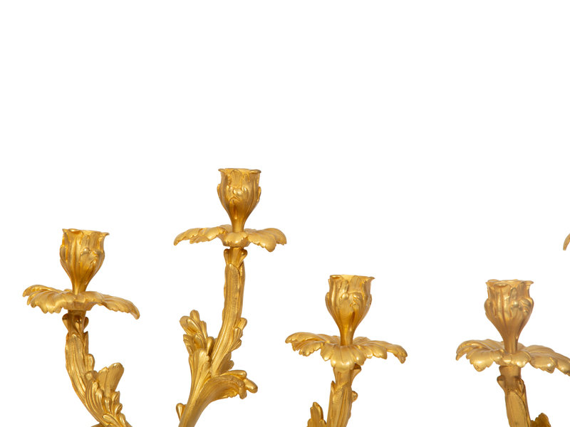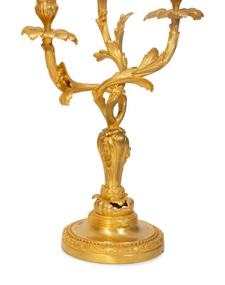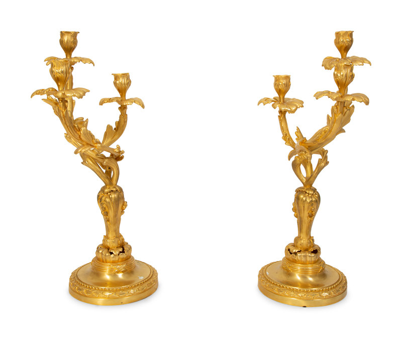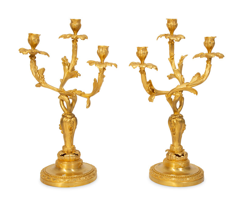 A Pair of Louis XV Style Gilt Bronze Three Light Candelabra
