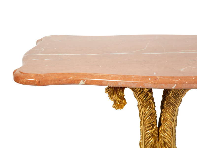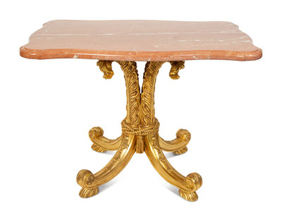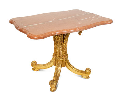 A Louis XV Style Carved Giltwood Rouge Marble Top Table
