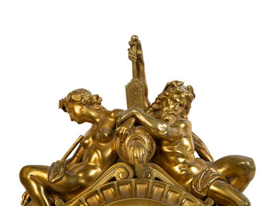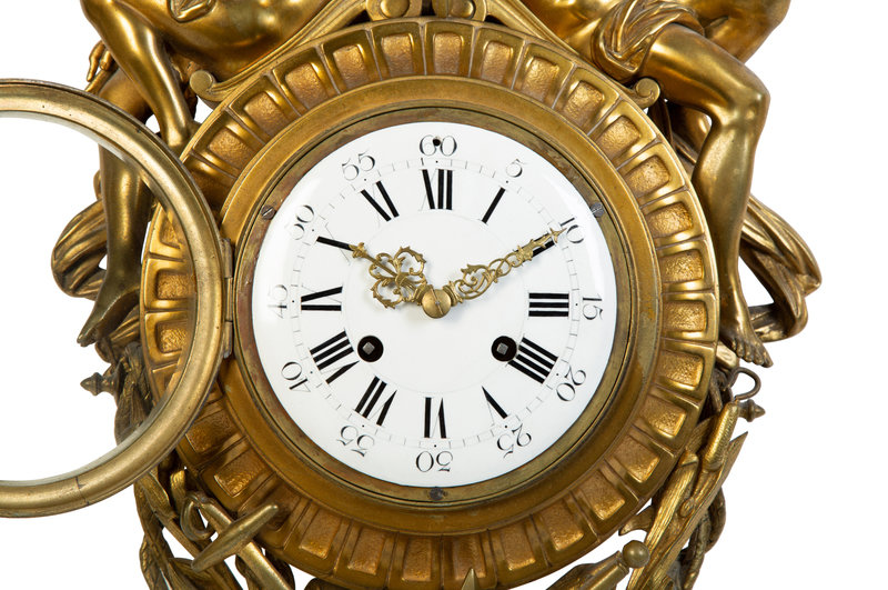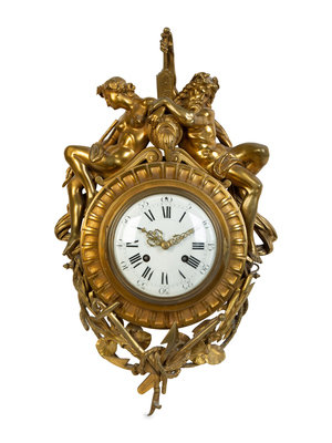 A Louis XVI Style Gilt Bronze Figural Wall Clock