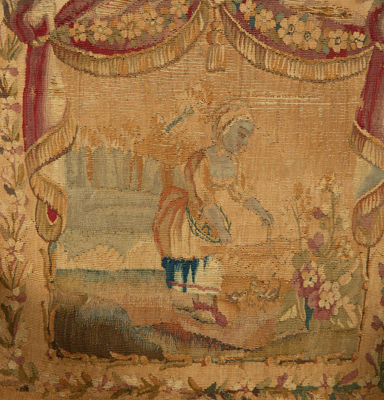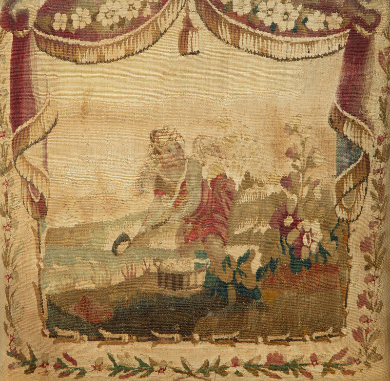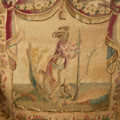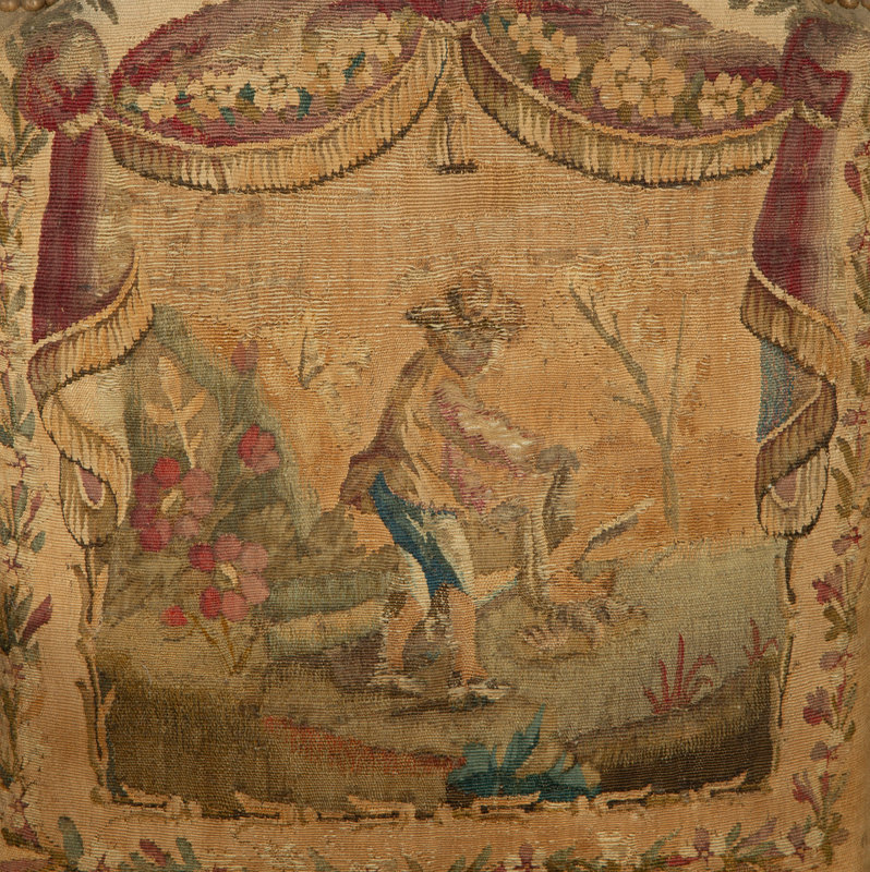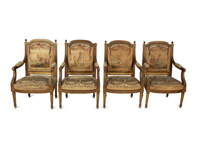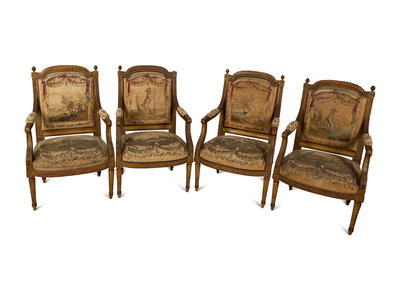 A Set of Four Louis XVI Style Giltwood Fauteuils with Tapestry Upholstery