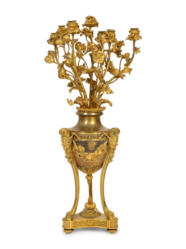 A Louis XVI Style Gilt Bronze Candelabrum by Henry Dasson
