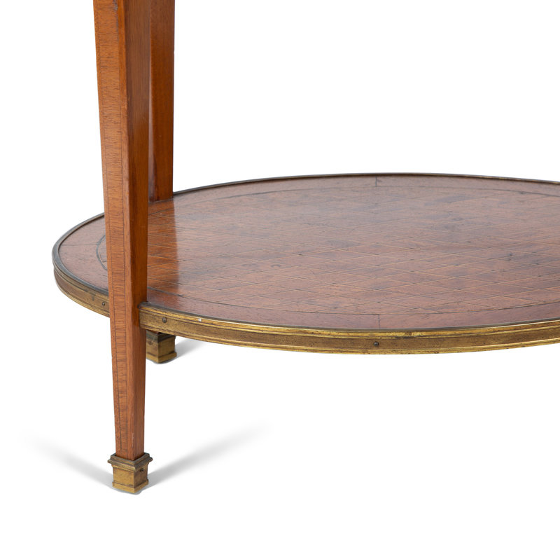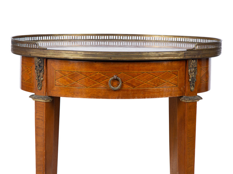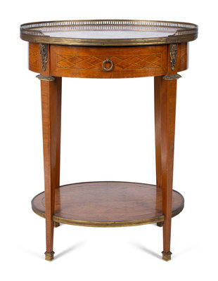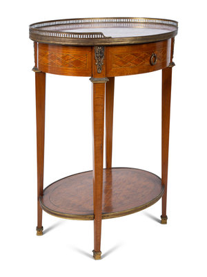 A Louis XVI Style Gilt Bronze Mounted Parquetry Marble-Top Side Table Attributed to Grosfeld House