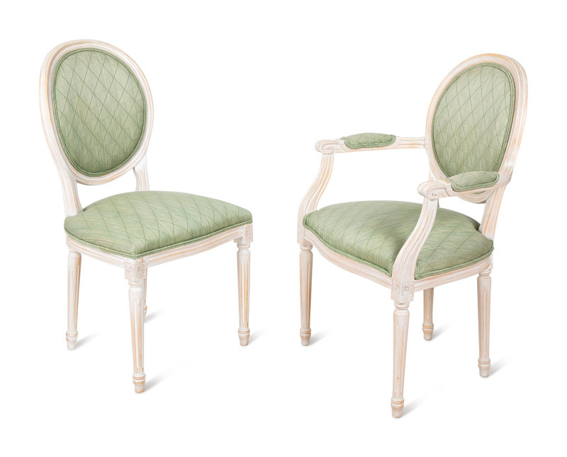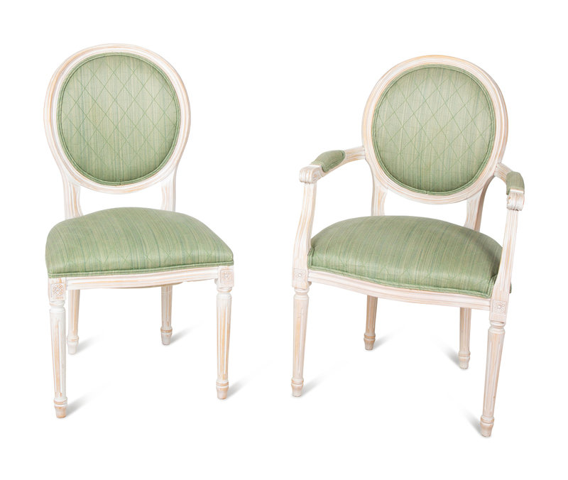 A Set of Six Louis XVI Style Upholstered Dining Chairs