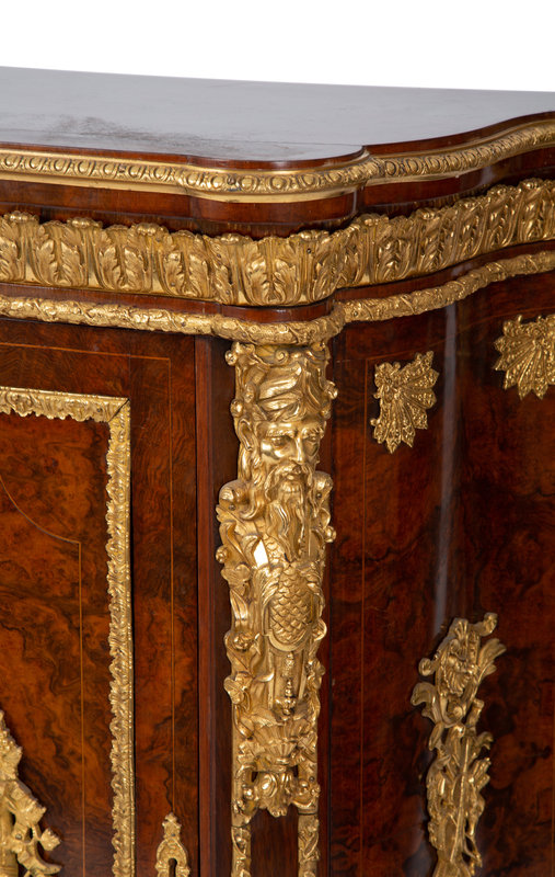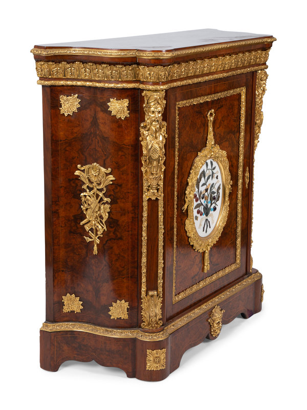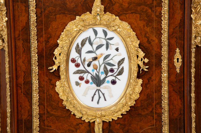 A Napoleon III Style Gilt Bronze Mounted and Hardstone Plaque-Inset Burlwood Cabinet