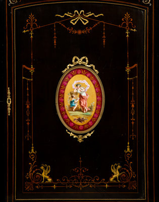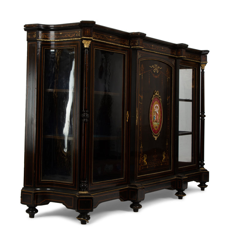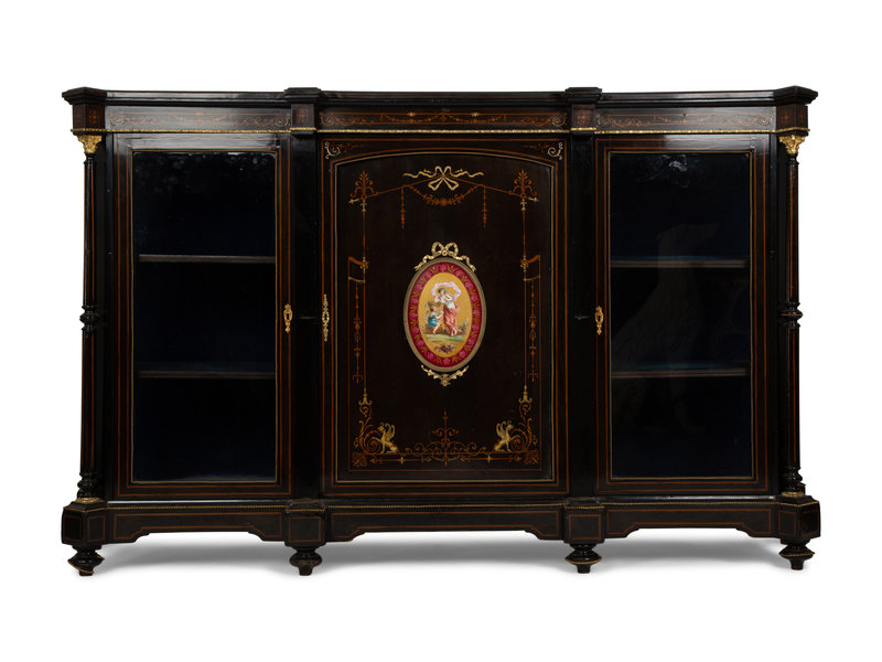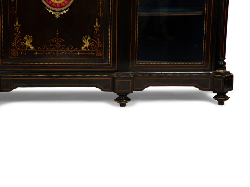 A Napoleon III Gilt Bronze and Porcelain Mounted Ebony and Marquetry Cabinet