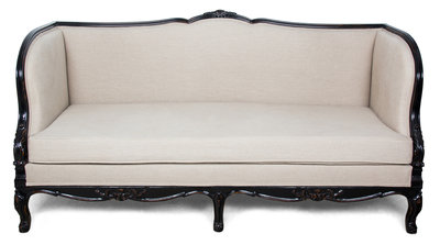 A French Empire Style Ebonized Mahogany Upholstered Settee