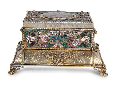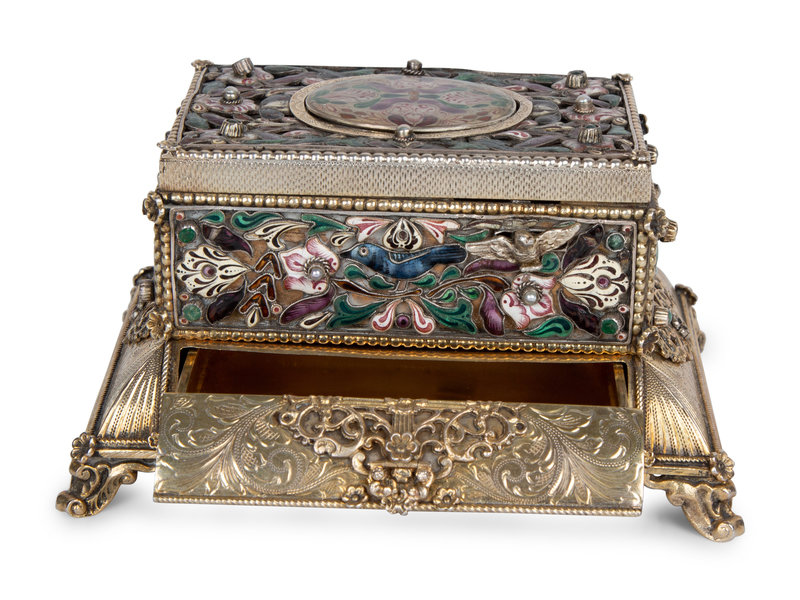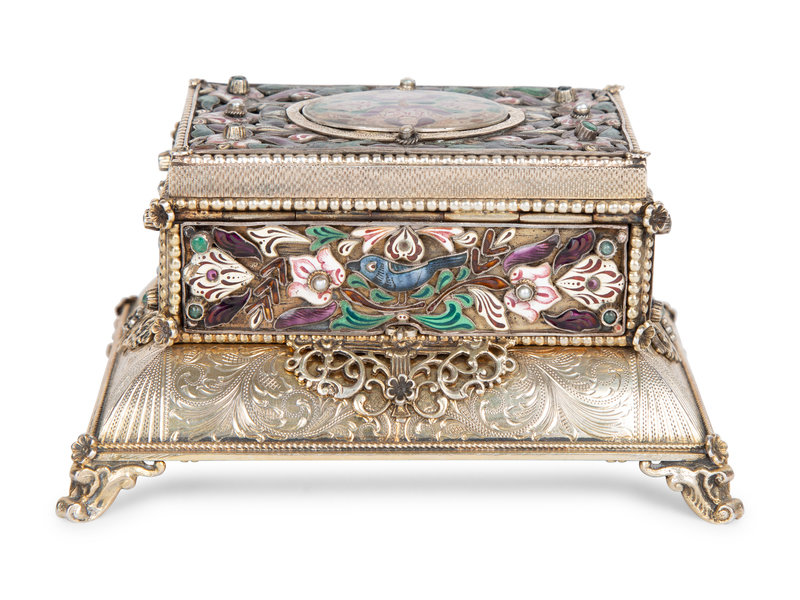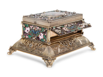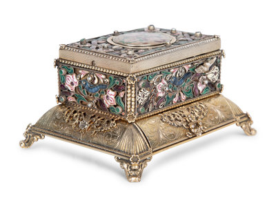 A Continental Enameled Silver Gilt Singing Bird Automaton Box
