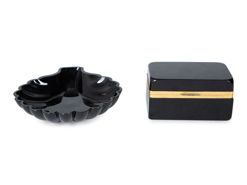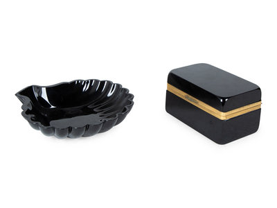 Two French Black Glass Articles