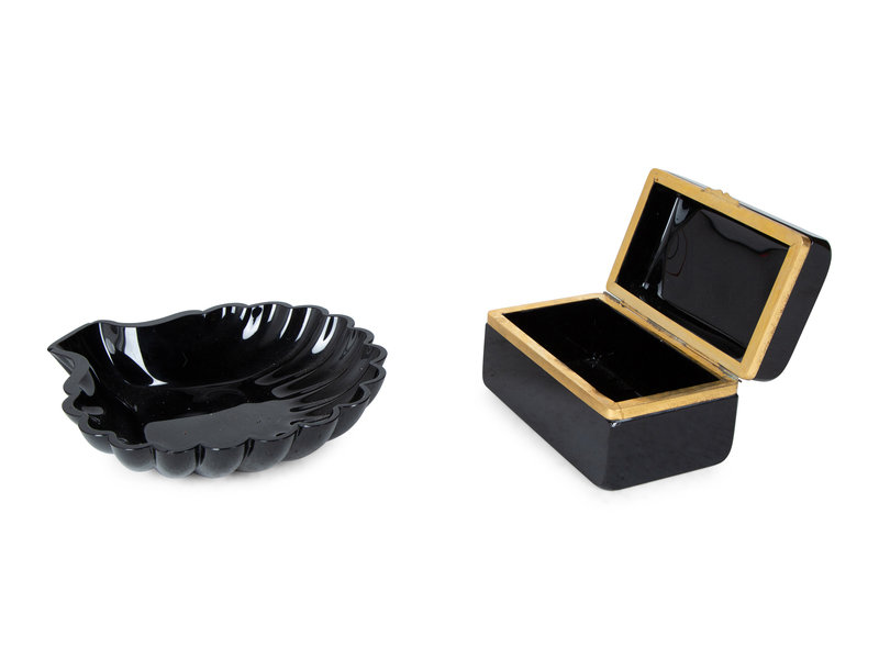 a lidded box and a shell-form bowl.