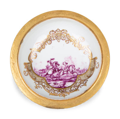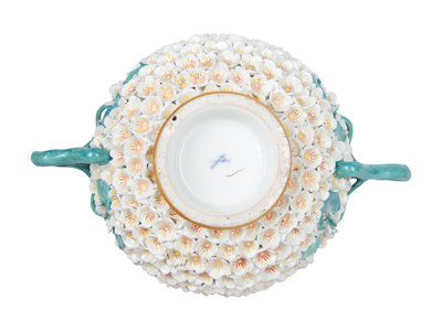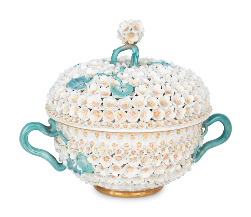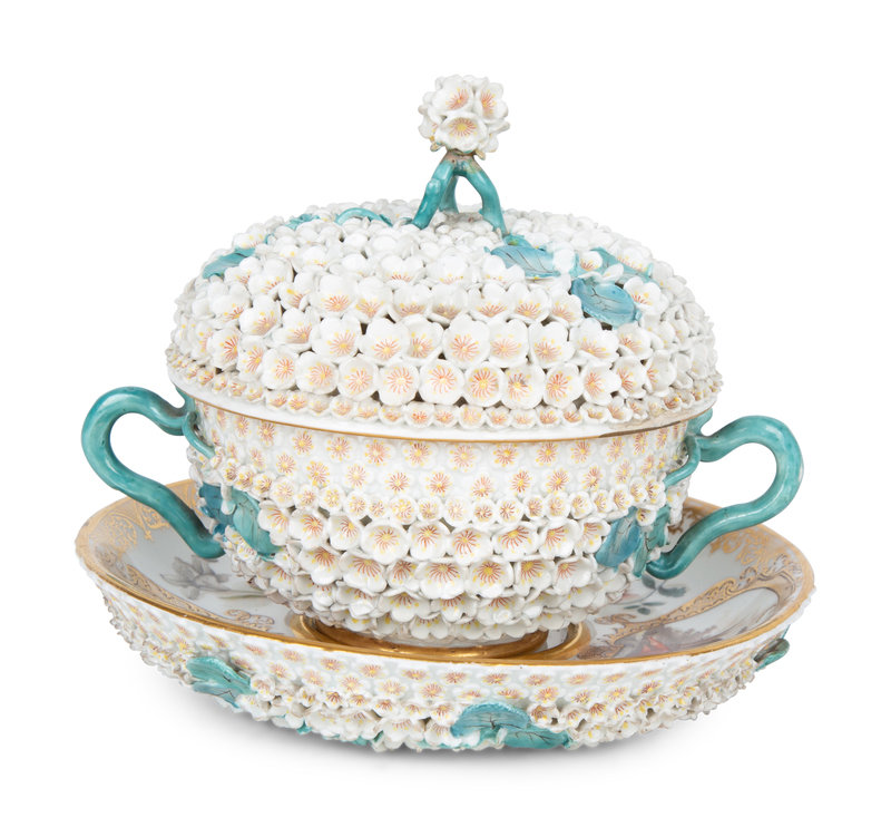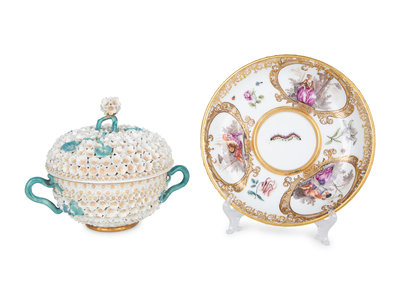 A Meissen Porcelain Schneeballen Covered Cup and Saucer