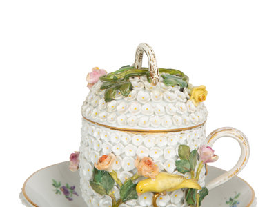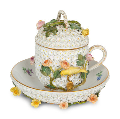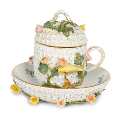 A Meissen Porcelain Schneeballen Cup and Saucer