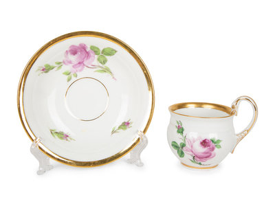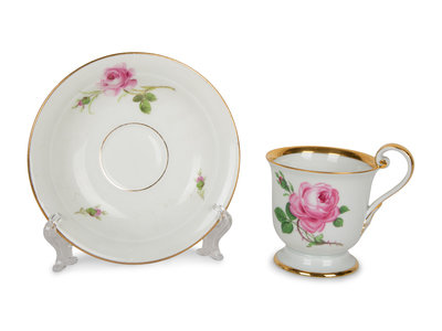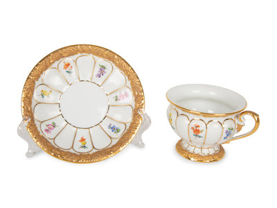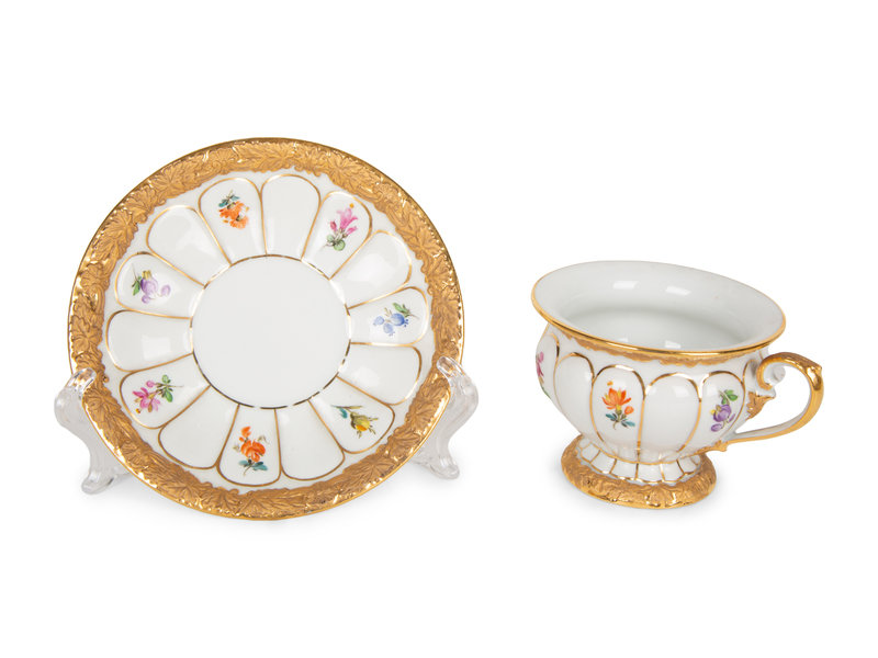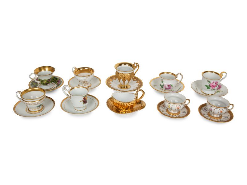 Ten Meissen and Style of Porcelain Teacups and Saucers