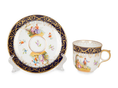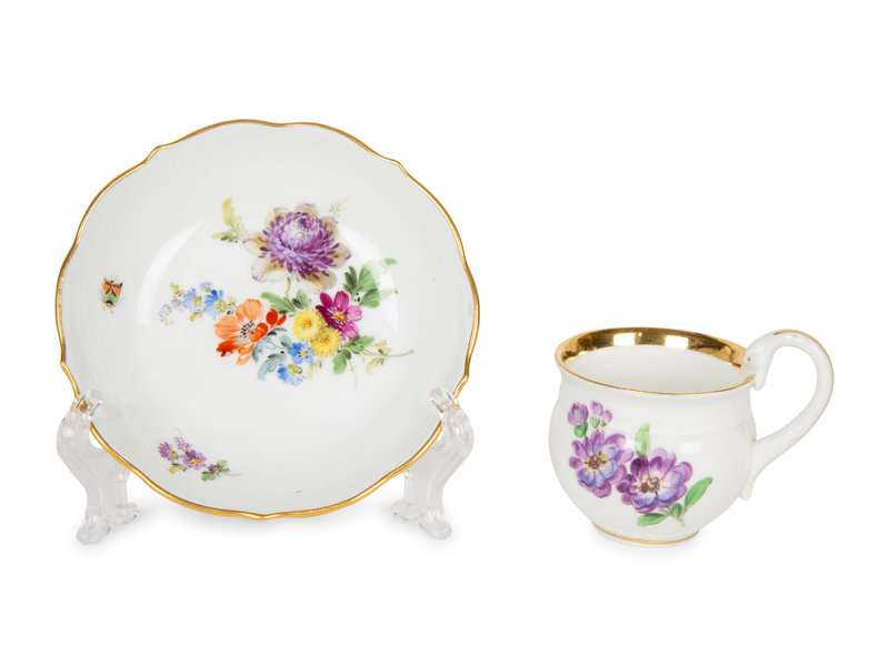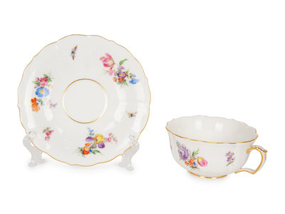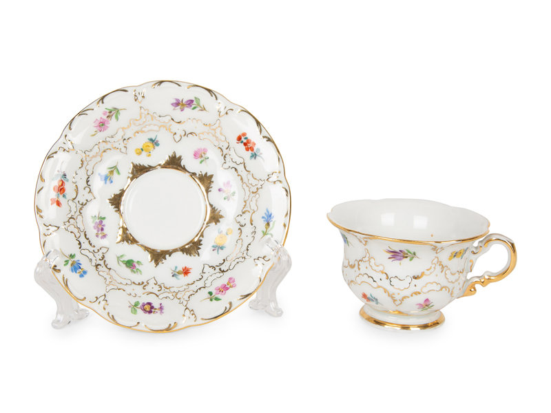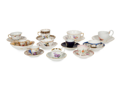 Eleven Meissen and Various Other Porcelain Teacups and Saucers