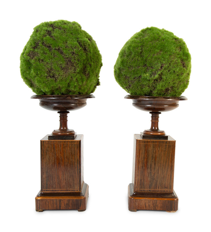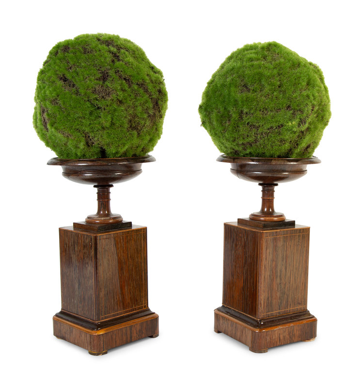 A Pair of Marquetry Inlaid Mahogany Compotes