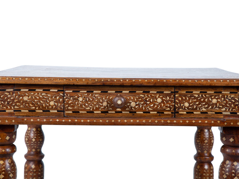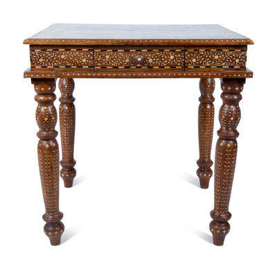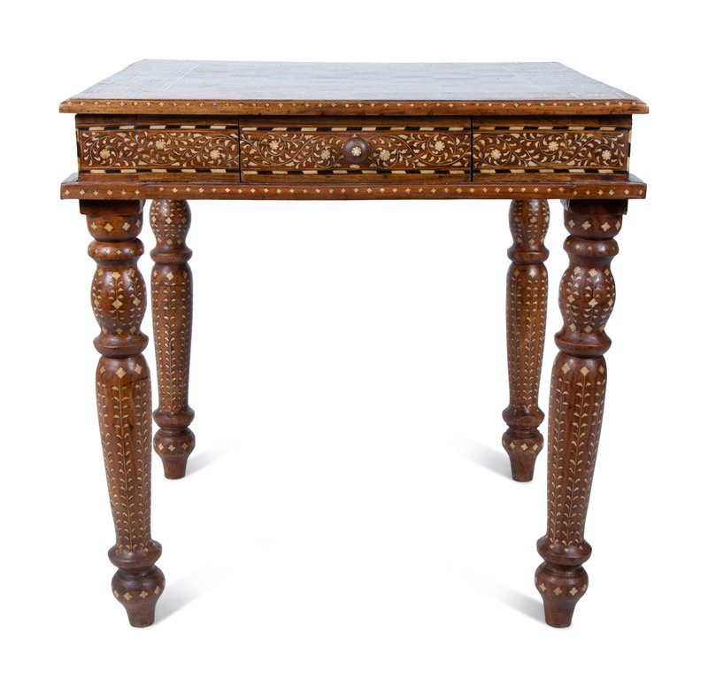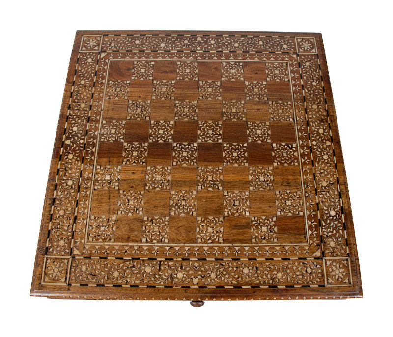 An Anglo-Indian Inlaid Teak & Satinwood Game Table