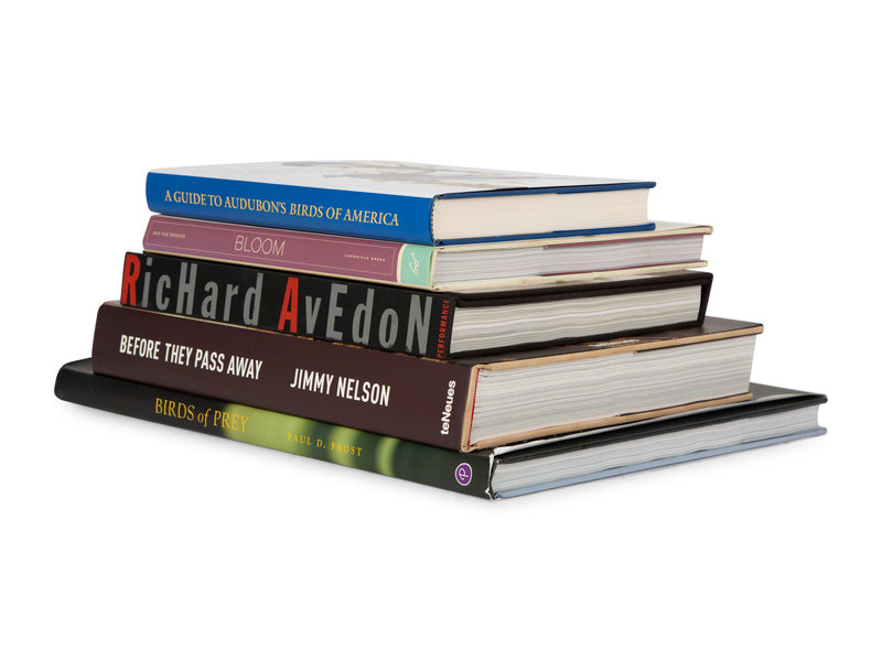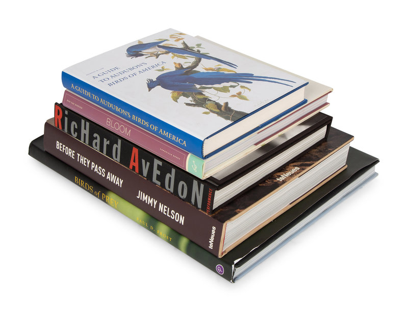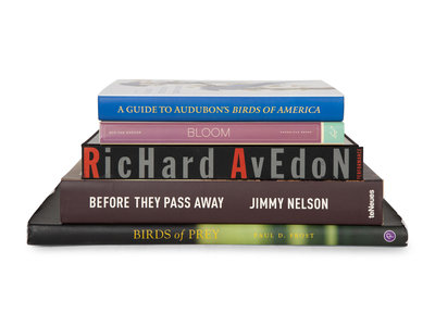 comprising Susanne M. Low's, "A Guide to Audubon's Birds of America"; Paul D. Frost's "Birds of Prey"; Ron Van Dongen's "Bloom"; Richard Avedon's "Performance"; and Jimmy Nelson's "Before They Pass Away".