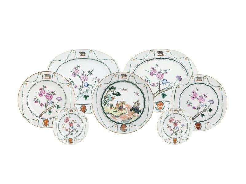 A Chinese Export Armorial Porcelain Partial Dinner Service