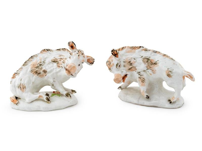 A Pair of English Porcelain Boars