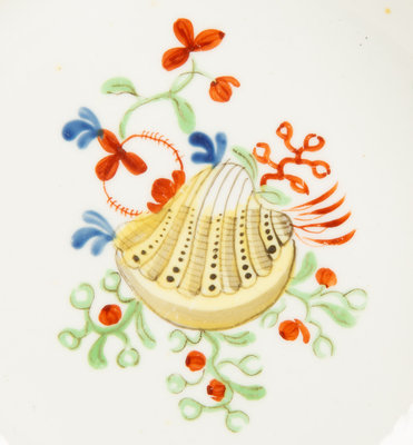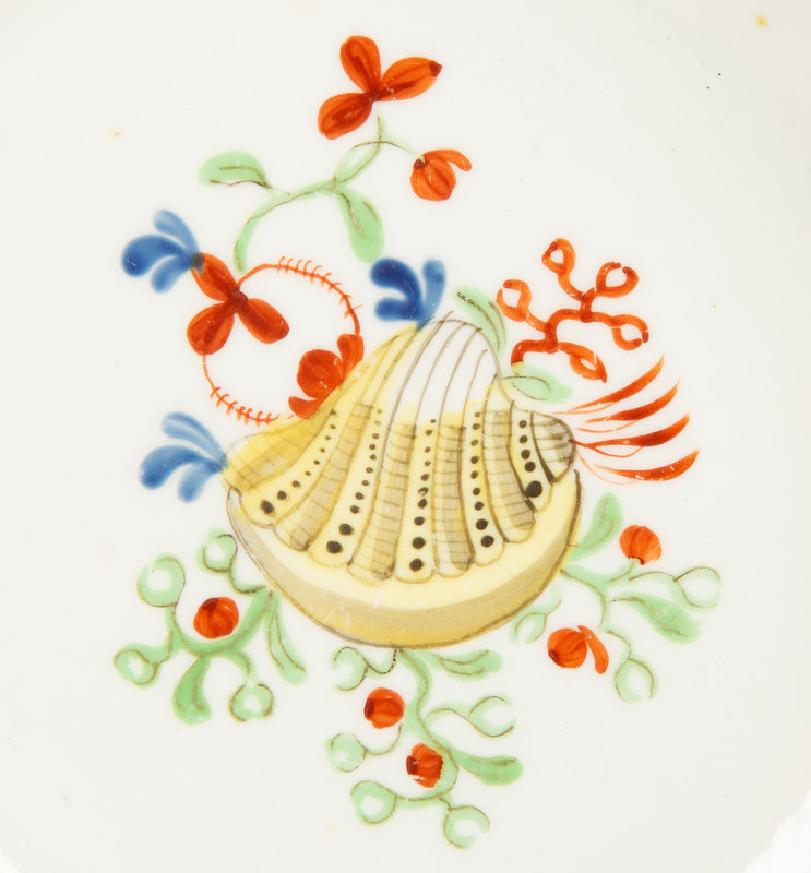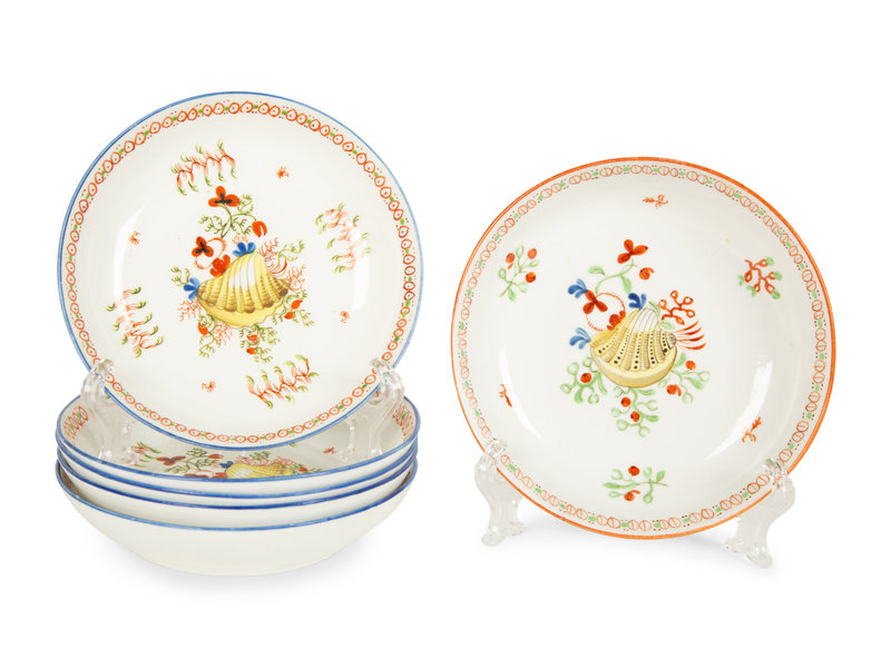 Six English New Hall Porcelain Works Hard Paste Shallow Bowls in the Yellow Shell pattern