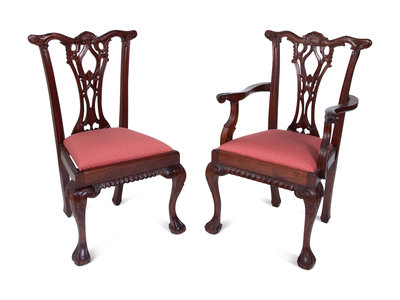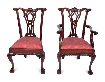 A Set of Eight Chippendale Style Mahogany Dining Chairs