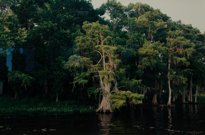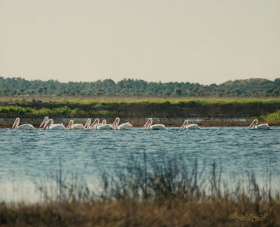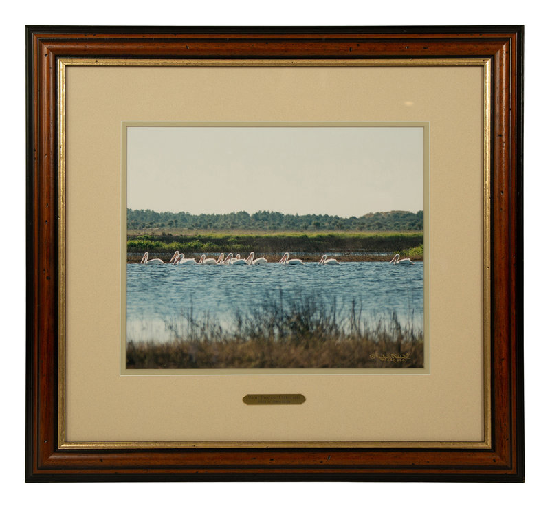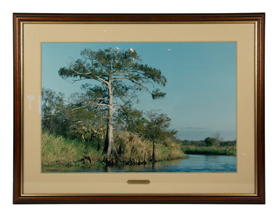 Cypress Trees, Great Blue Heron; White Pelicans, Everglades; and White Ibis in Cypress Tree