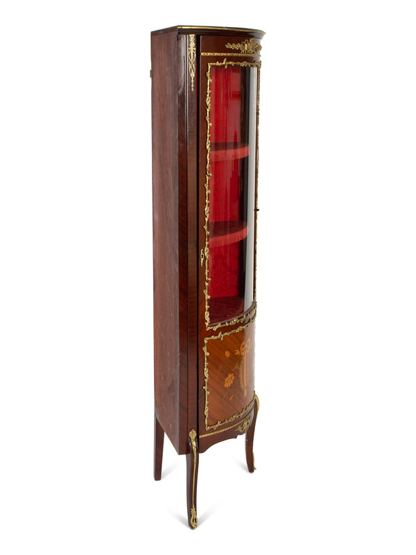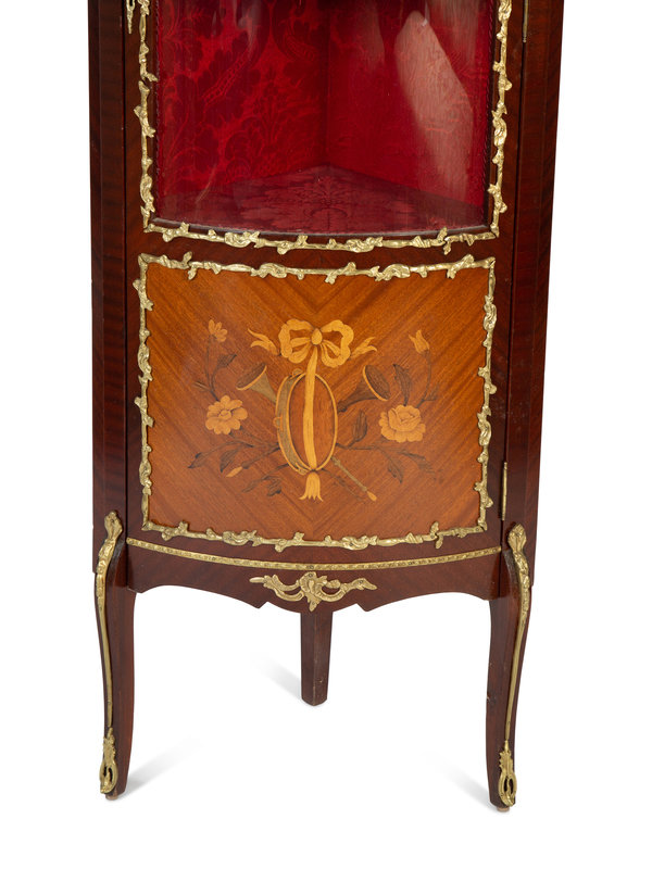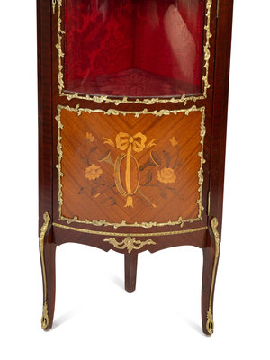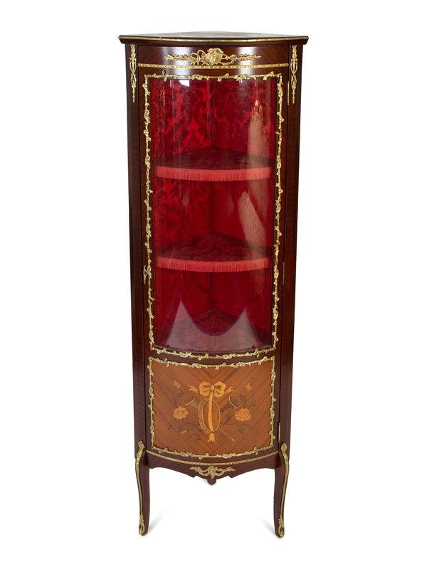 A Louis XV Style Gilt Metal Mounted Marquetry Corner Vitrine
