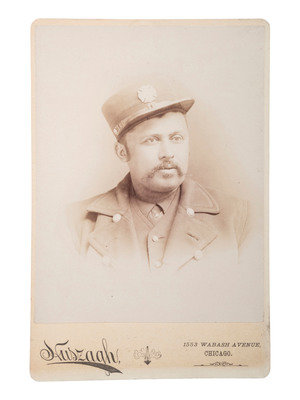 [EARLY PHOTOGRAPHY]. HUSZAGH, photographer. Cabinet card of African American firefighter. Chicago, IL, ca late 19th century.