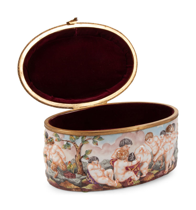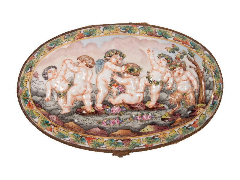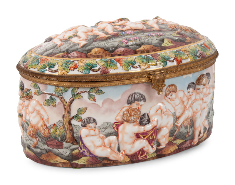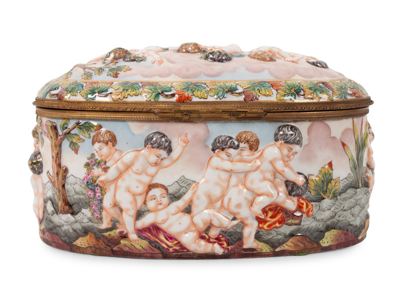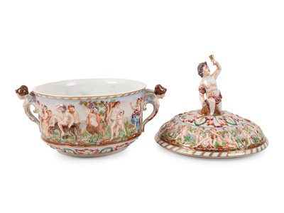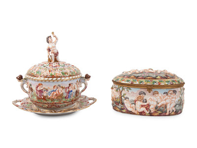 A Group of Capodimonte Porcelain Objects Including a Soup Tureen, Undertray and Hinged Box