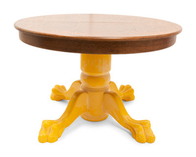 A Stickley Style Yellow Painted Quarter-Sawn Oak Dining Table