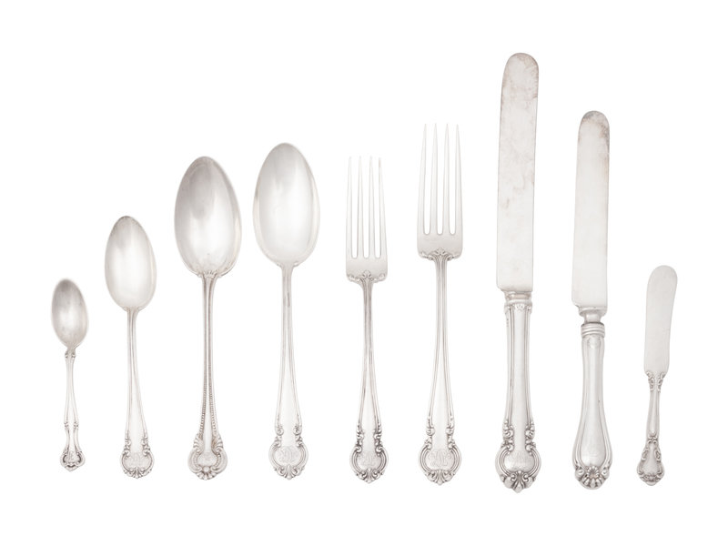 2 dinner forks, 4 salad forks, 2 dinner knives, 5 dinner spoons and 4 teaspoons from Reed & Barton